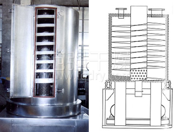 產(chǎn)品概述:濕物料自頂部加料口進(jìn)入螺旋床內,在周向激振力及重力的作用下,物料沿螺旋床自上而下作跳躍運動(dòng)直至最底層;同時(shí),潔凈的熱風(fēng)由螺旋床底部進(jìn)入,與分布在床上的物料進(jìn)行充分的傳熱和傳質(zhì)后,由頂部排濕口排出。從而使物料達到了干燥的目的。