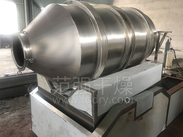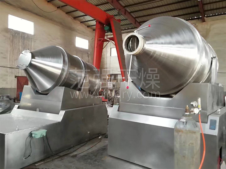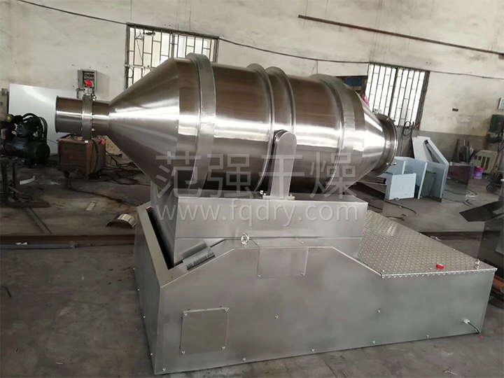 EYH二維混料機的轉筒可同時(shí)進(jìn)行二個(gè)運動(dòng),一個(gè)為轉筒的轉動(dòng),另一個(gè)為轉筒隨擺動(dòng)架的擺動(dòng)。被混合物料在轉筒內隨轉筒轉動(dòng)、翻轉、混合的同時(shí),又隨轉筒的擺動(dòng)而發(fā)生左右來(lái)回的摻混運動(dòng),在這兩個(gè)運動(dòng)的共同作用下,物料在短時(shí)間內得到充分的混合。EYH二維混料機適合所有粉、粒狀物料的混合。