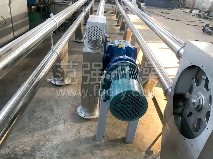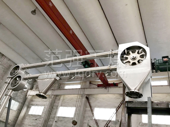 2、物料于環(huán)形管內輸送,從進(jìn)口到出口法蘭之間處于全密封狀態(tài)。出口不必設置除塵器。在輸送物料時(shí)可充裝氣體,在運輸中能保證無(wú)粉塵溢漏到環(huán)境中整潔環(huán)保。輸送管道無(wú)死區。